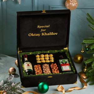 Setə daxildir - Şotlandiya brendi olan Chivas Regal 18 (500ml) viskisi, Ferrero Rocher şokoladları, çərəzlər və bakallar